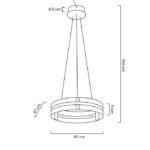 Visilica Saturnus izrađena je od zlatne konstrukcije koja kombinira elemente stakla i metala, stvarajući rasvjetno tijelo jedinstvenog karaktera. Na abažuru se mogu pojaviti mjehurići koji su prirodan efekt ručne obrade stakla.