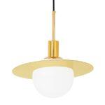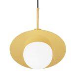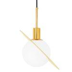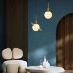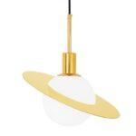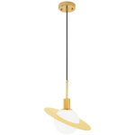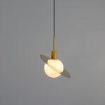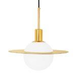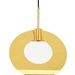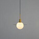 Visilica Uran izrađena je od kombinacije mesinga zlatne boje i sferičnog sjenila od mliječnog stakla. Cjelina je obješena na zlatnu stropnu ružu i crni tekstilni kabel. Svjetiljka će biti savršen dodatak interijerima stambenih ili ugostiteljskih i hotelskih prostora.