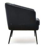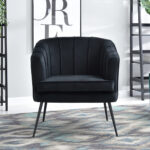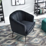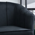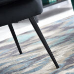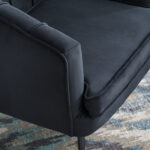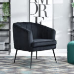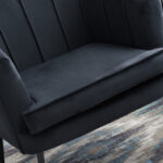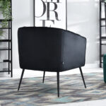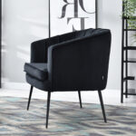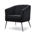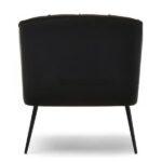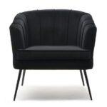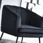 Fotelja elegantnog dizajna umotana u udoban baršun na crnim nogama koje donose stil te naglašavaju ljepotu prostora i same fotelje.