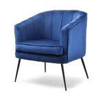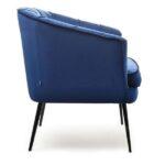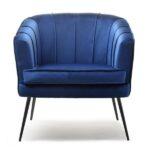 Fotelja elegantnog dizajna umotana u udoban baršun na crnim nogama koje donose stil te naglašavaju ljepotu prostora i same fotelje.