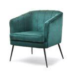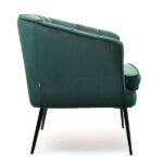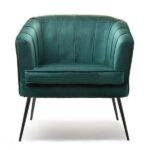Fotelja elegantnog dizajna umotana u udoban baršun na crnim nogama koje donose stil te naglašavaju ljepotu prostora i same fotelje.