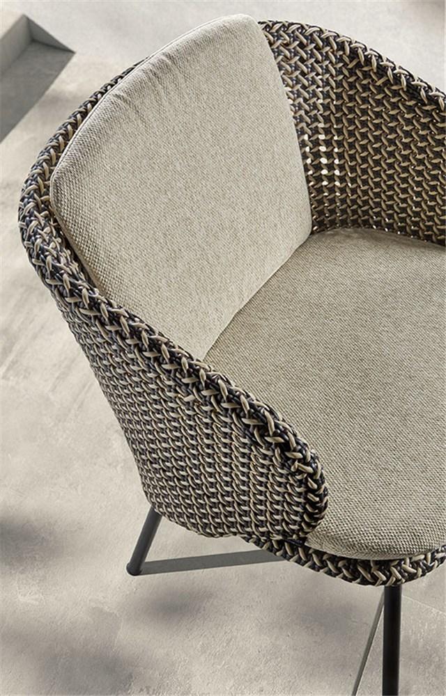 Kolekcija Modesto nudi savršenu kombinaciju udobnosti i luksuza za boravak na otvorenom. Stolice su presvučene tkanim materijalom boje kamenica, a jastuci krem boje stvaraju profinjen kontrast, istovremeno nudeći vrhunsku udobnost. I tkanina i punjenje izrađeni su od visokokvalitetnih materijala za vanjsku upotrebu, što ove stolice čini otpornima na vremenske uvjete i izdržljivima bez kompromisa u pogledu mekoće i stila.
