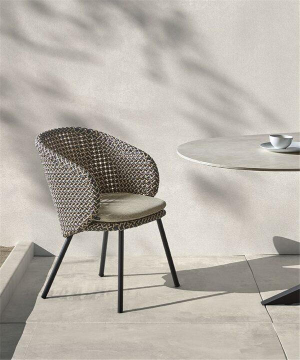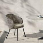 Kolekcija Modesto nudi savršenu kombinaciju udobnosti i luksuza za boravak na otvorenom. Stolice su presvučene tkanim materijalom boje kamenica, a jastuci krem boje stvaraju profinjen kontrast, istovremeno nudeći vrhunsku udobnost. I tkanina i punjenje izrađeni su od visokokvalitetnih materijala za vanjsku upotrebu, što ove stolice čini otpornima na vremenske uvjete i izdržljivima bez kompromisa u pogledu mekoće i stila.