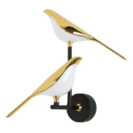 Zidna svjetiljka Bird Twin dizajnersko je rasvjetno tijelo izrađeno od kombinacije akrila i metala. Dvije bijele i zlatne ptice postavljene su na crni okvir koji podsjeća na granu. Dizajn učvršćenja omogućuje desnu ili lijevu montažu.