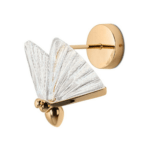 Zidna svjetiljka Butterfly dizajnerska je svjetiljka izrađena od zlatnog aluminija s prozirnim, kristalnim krilcima. Na podesivoj montažnoj uzici nalazi se ukrasni element u obliku kuglica boje stropne obloge. Serija rasvjetnih tijela Butterfly omogućuje vam stvaranje jedinstvenih, razigranih aranžmana.