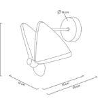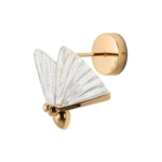 Zidna svjetiljka Butterfly dizajnerska je svjetiljka izrađena od zlatnog aluminija s prozirnim, kristalnim krilcima. Na podesivoj montažnoj uzici nalazi se ukrasni element u obliku kuglica boje stropne obloge. Serija rasvjetnih tijela Butterfly omogućuje vam stvaranje jedinstvenih, razigranih aranžmana.