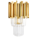 Zidna svjetiljka Imperial sastoji se od poklopca sjenila izrađenog od brušenog čelika u zlatnoj boji. Unutra su viseći kristali koji skrivaju izvor svjetla. Polukružni oblik zidne lampe, kombinacija zlata i staklenih kristala osiguravaju optimalno osvjetljenje prostorije.