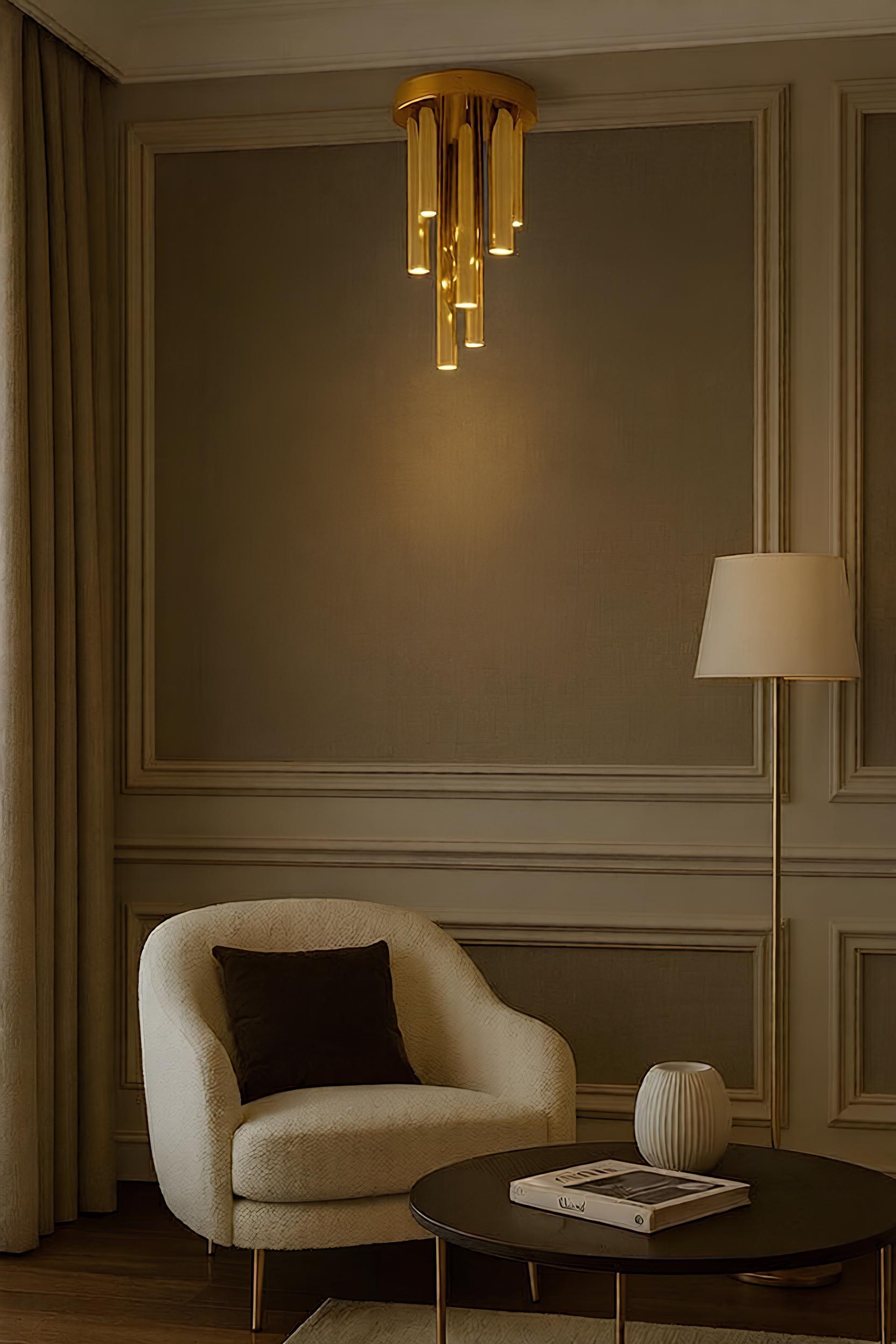 Zidna svjetiljka Organo upečatljiv je element koji spaja eleganciju s modernom sofisticiranošću. Izrađena od metala sa zlatnom završnom obradom, Organo oduševljava svojom skladnom kompozicijom. Devet izvora svjetlosti osvjetljava unutrašnjost, stvarajući toplu atmosferu.