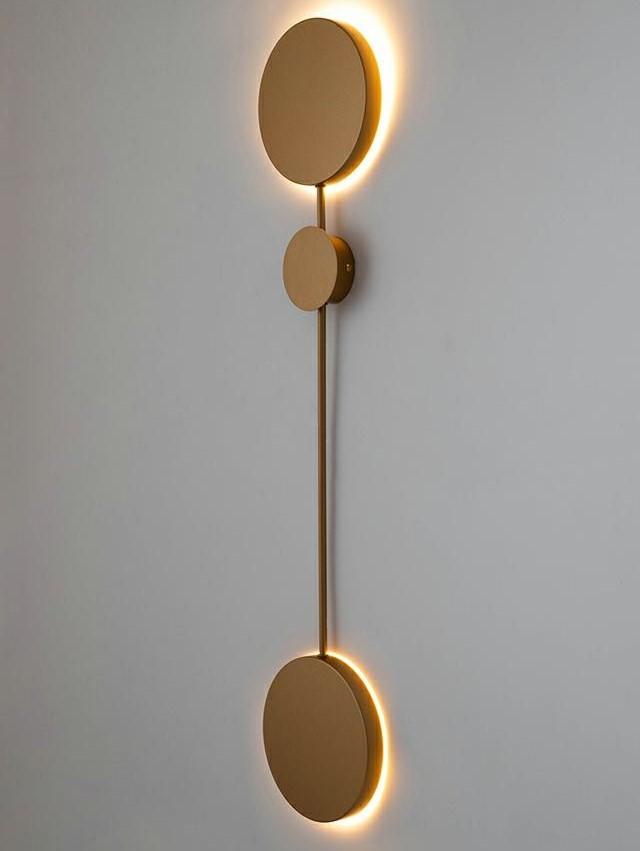 Zidna lampa Shadow je moderno rasvjetno tijelo izrađeno od metala i aluminija u zlatnoj boji. Može se objesiti i na strop kao stropna svjetiljka. Okrugla sjenila skrivaju izvor svjetlosti te se svjetlosni tok odbija od zida. Svjetiljka stvara efekt padajuće sjene, koja ugodno osvjetljava prostoriju.